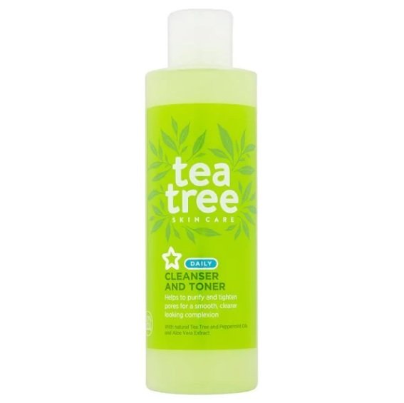 Superdrug Tea Tree Cleanser and Toner is specially formulated with Tea Tree Oil, renowned for its natural purifying and antibacterial properties, to help promote a clearer, healthier-looking complexion. With Aloe Vera, it also helps to moisturise and soften the skin, while a burst of Peppermint Oil helps leave the skin feeling ultra-clean and refreshed.