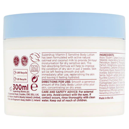 Superdrug Vitamin E Sensitive Oat and Coconut Body Lotion 200ml