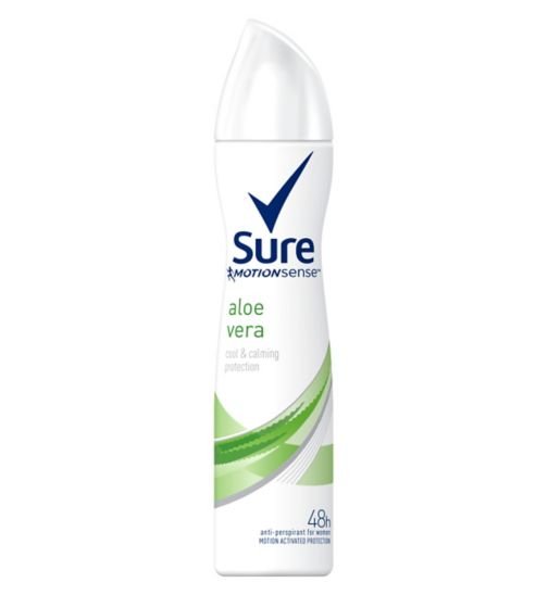 Sure® Women Aloe Vera antiperspirant Deodorant is specifically formulated to give you the confidence to keep you moving with all day protection against sweat and odour. You can be confident that you’ll stay dry and be free to live your life throughout the day with a fresh Aloe Vera fragrance. And you know you can stay confident with Sure® Women Aloe Vera with its long-lasting protection from sweat and body odour.