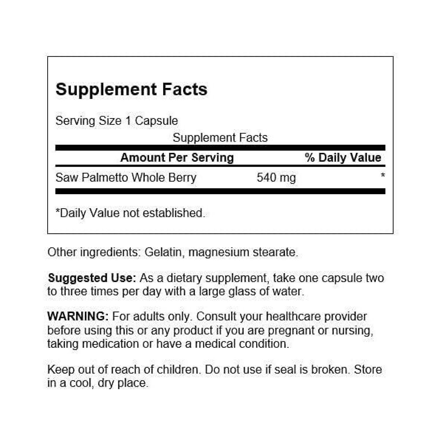* Our saw palmetto capsules supply 540 mg of premium-grade whole berry powder in a full spectrum format so you get all the constituents of saw palmetto just as its found in nature.