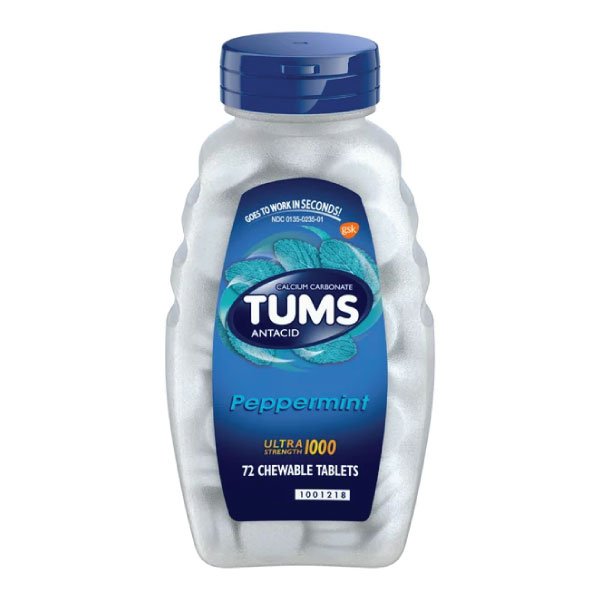 TUMS Ultra Strength 1000 Peppermint Antacid Chewable Tablets treat your heartburn in seconds so you can focus on the moments in life that matter. These ultra-strength antacid tablets contain double the acid neutralizing power per tablet of Regular Strength TUMS for even more powerful relief. Choose these refreshing peppermint antacid tablets for great-tasting heartburn relief. TUMS antacid chewable tablets contain the gluten-free ingredient calcium carbonate, which works to relieve heartburn and fight against sour stomach, acid indigestion, and upset stomach. TUMS Ultra Strength 1000 neutralizes stomach acid on contact, providing fast-acting symptom relief. These antacid tablets are made for adults and children over the age of 12. Purchase peppermint antacid tablets from the #1 physician, pharmacist, and OBGYN-recommended adult antacid brand and quickly treat your heartburn when it strikes.