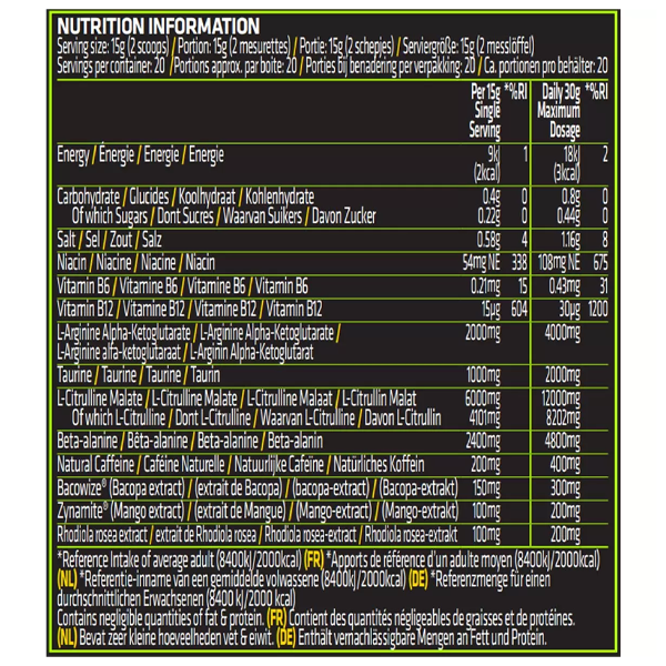 - 200mg Natural Caffeine per Serving