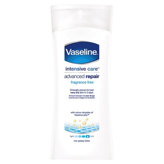 When you have very rough, irritated dry skin you need something that will moisturise to help sooth it fast. In our Advanced Fragrance Free lotion, we’ve combined micro-droplets of Vaseline® Petroleum Jelly with our highest levels of moisturising glycerin.