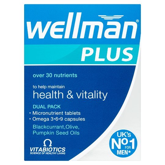 Wellman Plus 3-6-9 dual pack provides all the benefits of the UK’s No.1 comprehensive multivitamin formula for men, plus a high purity Omega-3-6-9 capsule.