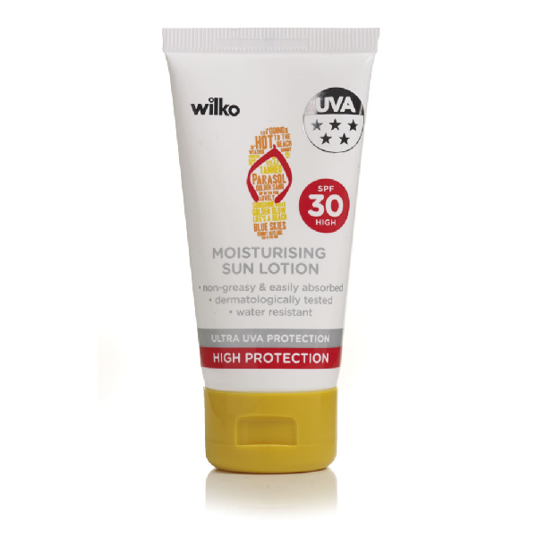 The Wilko Moisturising Sun Lotion SPF30 offers a high level of protection. The moisturising formula works to keep the skin supple and soft, and with added Vitamin E this powerful anti-oxidant helps protect against long term skin damage. Easy to apply, non-greasy and easily absorbed, water resistant, and dermatologically tested. Handy 50ml bottle, perfect for holidays, handbags, and trips away – a great everyday sun lotion. All Wilko sun protection products have been awarded a maximum five-star rating against skin damage caused by UVA rays.Dermatologically tested and water resistant. SPF30, Ultra UVA Protection. High protection. For external use only. Keep out of reach of children. Always read instructions.